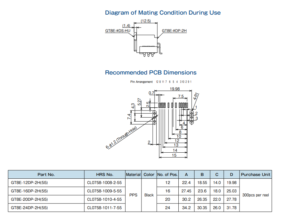 GT8E-16DP-2H(55)*金属附件+高PCB保持力*HRS 广濑